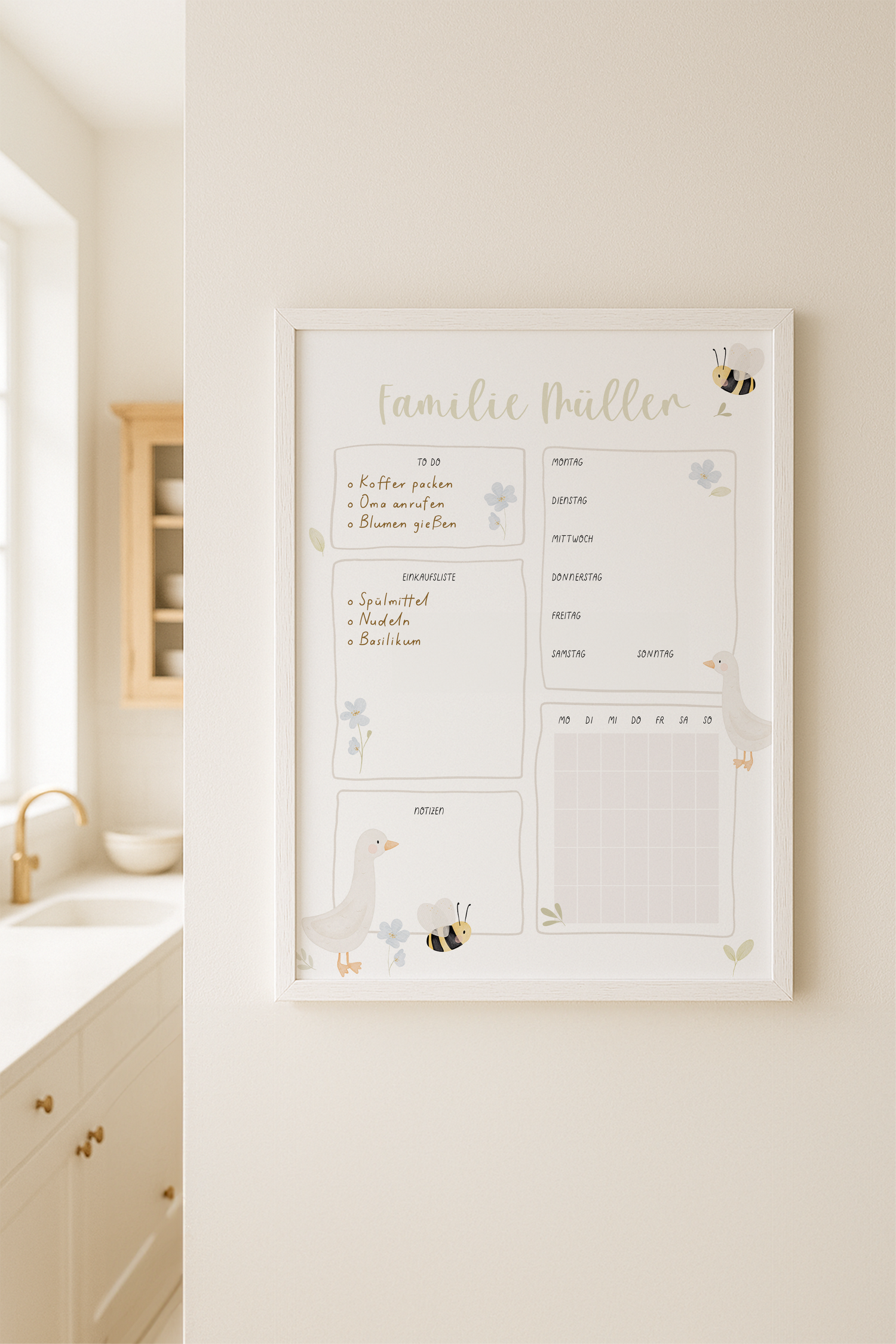 • Liebevoll illustrierter Familienplaner mit euren Namen oder Familiennamen 🪿