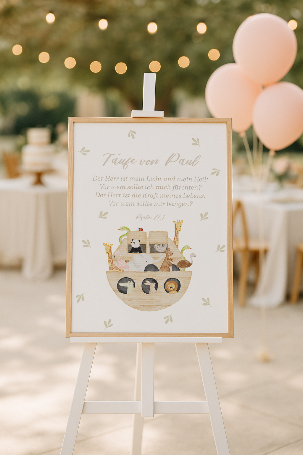 Poster zur Taufe mit Arche Noah - ein personalisiertes Geschenk zur Erinnerung an einen besonderen Tag 🐘🕊️