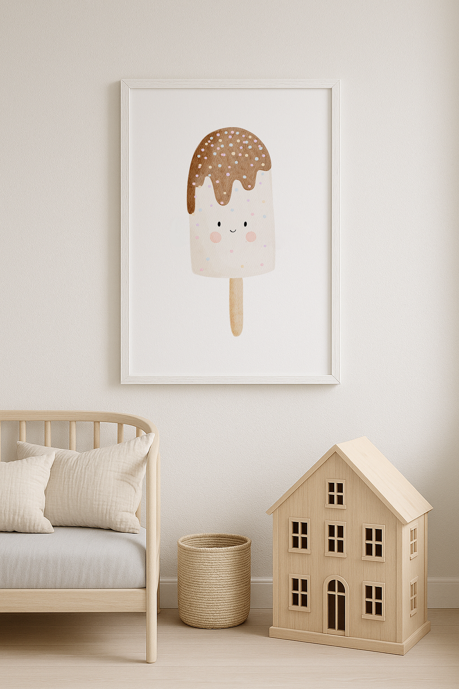 • Kinderzimmerposter mit Sommermotiv: ein niedliches Eis am Stiel
