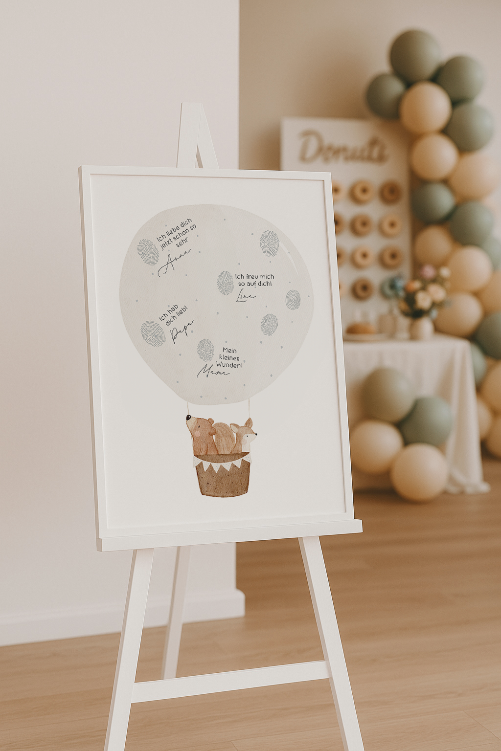 • Gästeposter mit Heißluftballon – ergänzt eure Fingerabdrücke oder kleinen Grüße im Ballon
