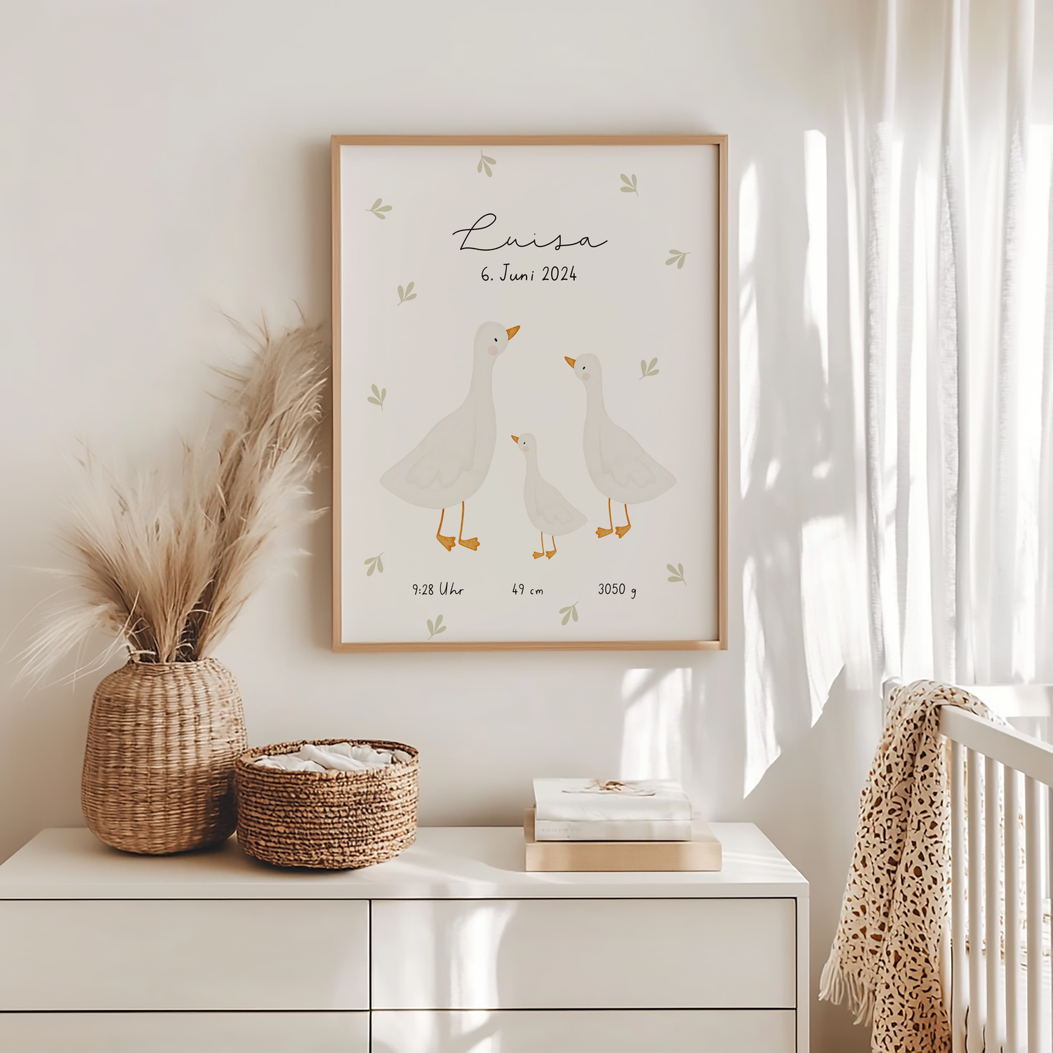 Geburtsposter Gänse - liebevolles Geschenk zur Geburt und niedliches Detail im Babyzimmer 🪿🌿