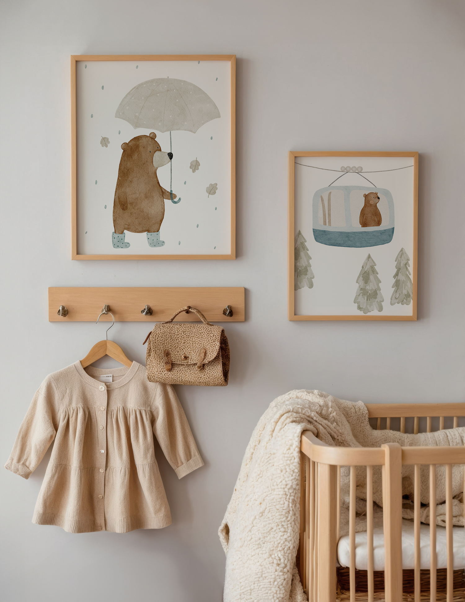 Dieses liebevoll illustrierte Poster zeigt einen Bären mit Regenschirm – ideal für alle, die das Kinderzimmer oder die Garderobe herbstlich dekorieren möchten. Ob über den Haken für Matschhosen oder als Saisonwechsel in der Kuschelecke – das Motiv schafft eine gemütliche Atmosphäre.