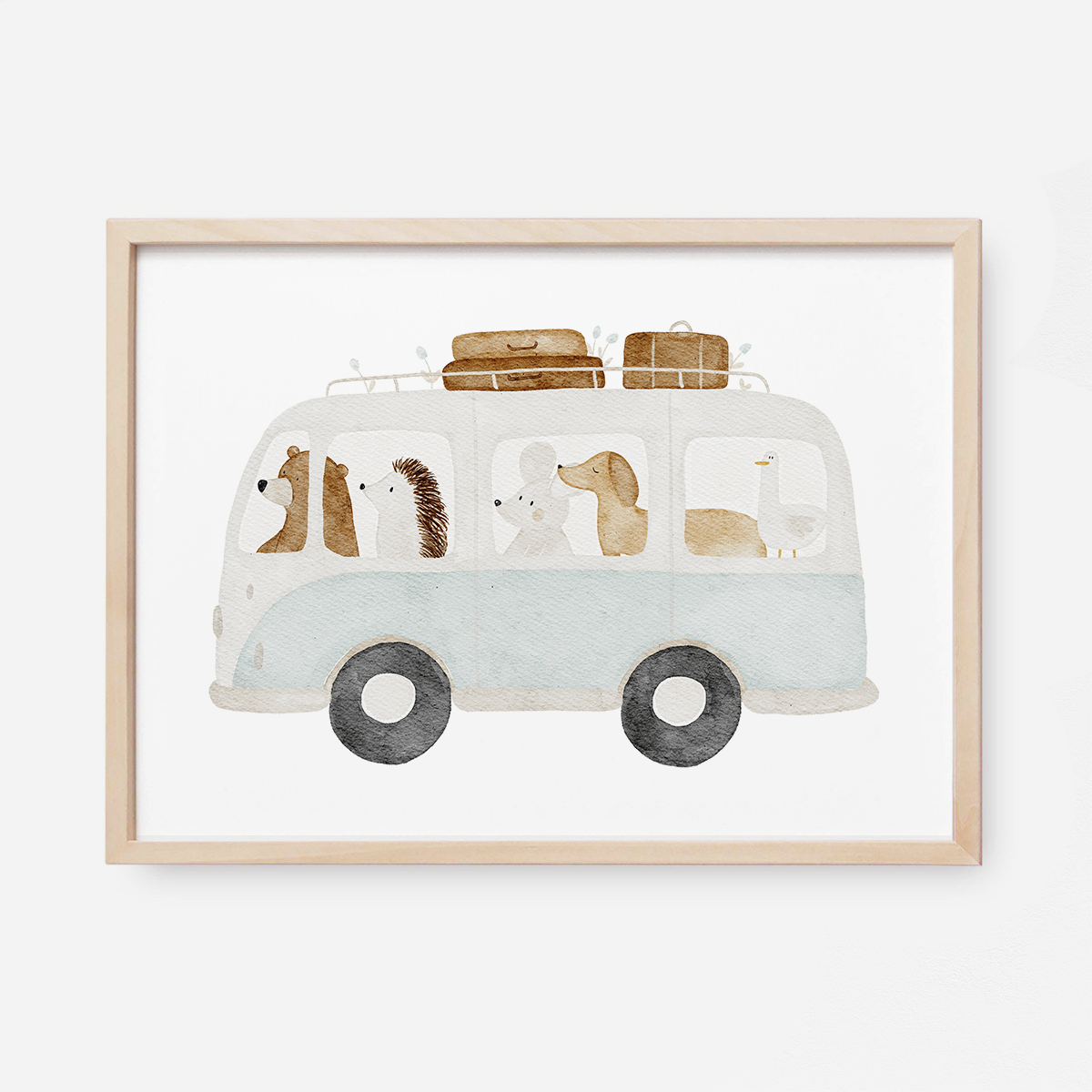 Ob als Einzelposter über dem Kinderbett oder als Teil einer Bilderwand mit anderen Tierpostern - der Tierbus ist ein süßer Hingucker für jedes Babyzimmer oder Kinderzimmer.