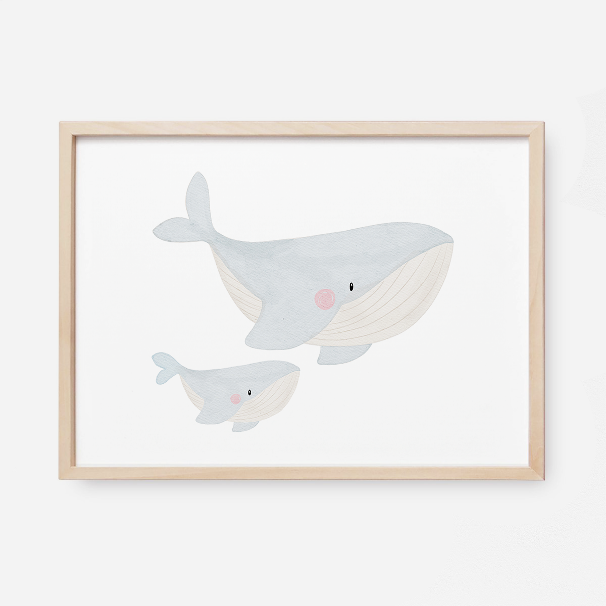 Ein Walbaby schwimmt dicht neben der Mama - ein süßes Motiv für alle, die das Meer lieben. Dieses Kinderposter passt wunderbar in ein maritimes Kinderzimmer, als Einzelbild oder Teil einer Ozean-Bilderwand. Auch als Geschenk zur Geburt oder Taufe ist es eine liebevolle Idee.