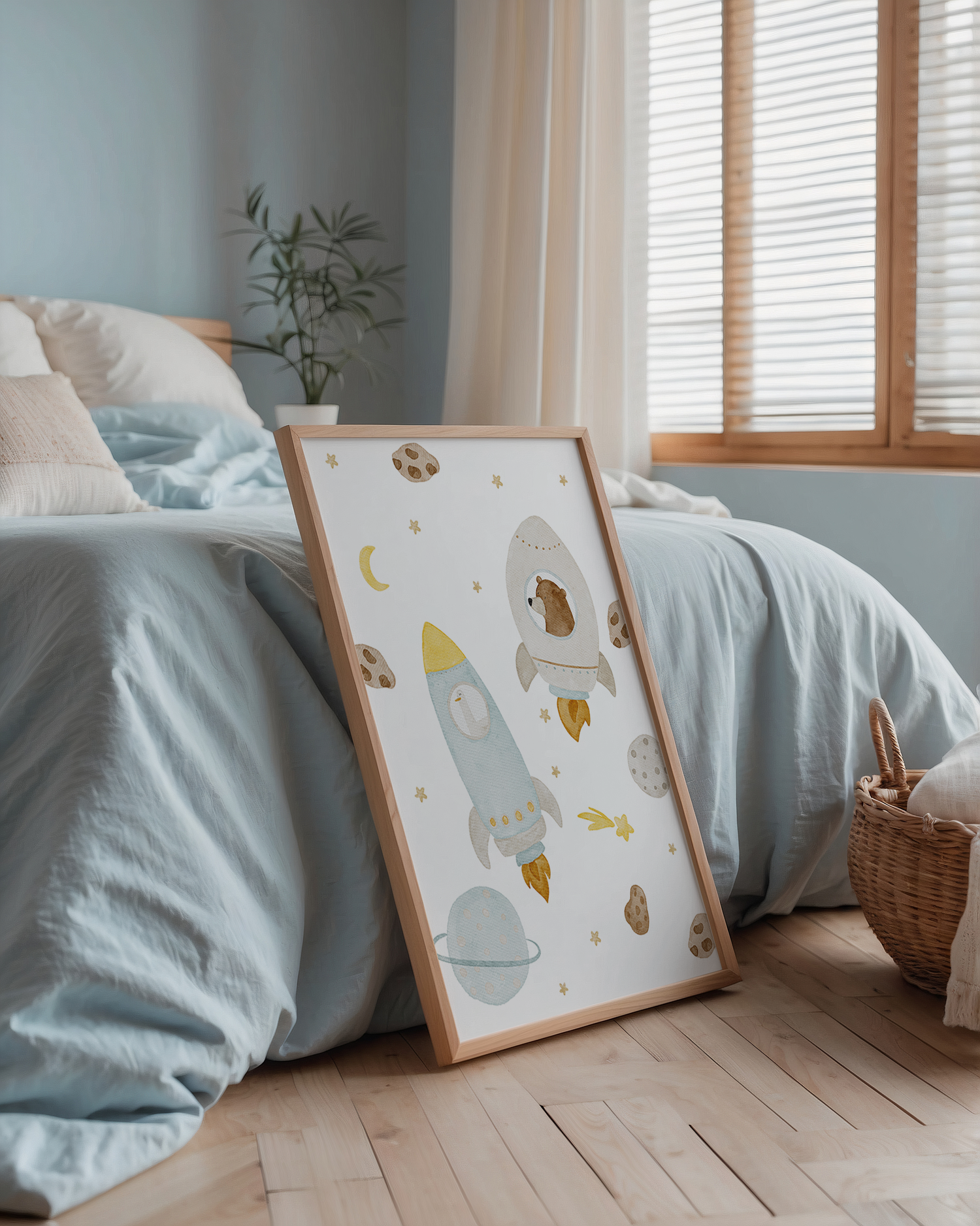 Kinderzimmerposter Weltraum Bär & Gans - liebevolles Motiv für kleine Weltall-Fans 🚀🪐
