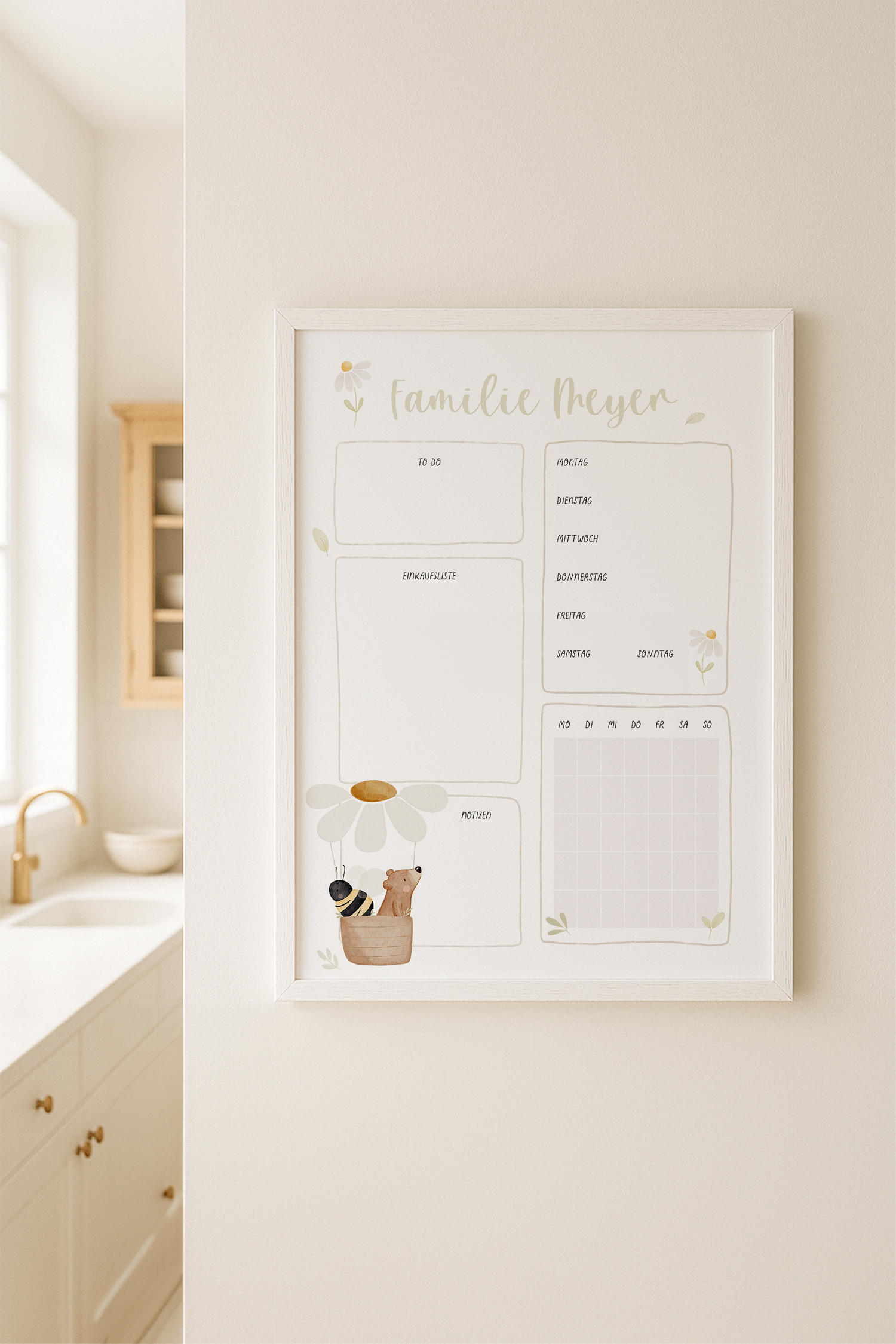 Familienplaner mit Heißluftballon, Gänseblümchen, Bär und Biene - personalisiertes Poster für eure Monats- und Wochen-Planung als Familie 🐻🐝